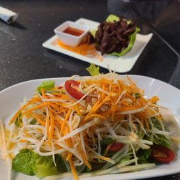 The best Thai food I have had locally. I have never been to Thailand and can't comment on authenticity but the food is credibly spicy with heat while retaining vibrant flavor. I eat here regularly and have not found a dud on the menu, but highly recommend any of the duck, noodle, or curry dishes. The papaya salad is a winner as well. I miss the lack of seitan on the menu, but that is the only thing in my wish list.